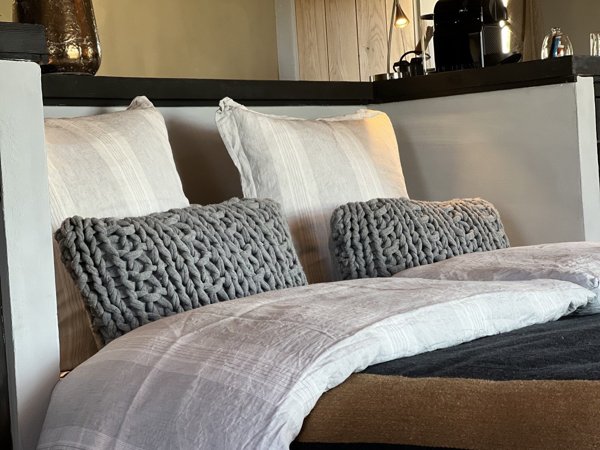 The Olivier room has a natural charm thanks to its aged wooden ceiling inspired by old sheepfolds.